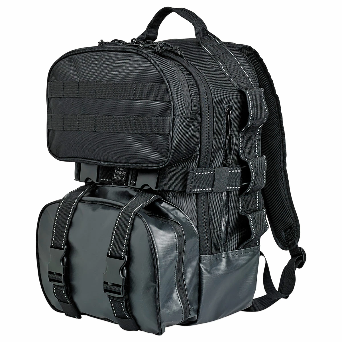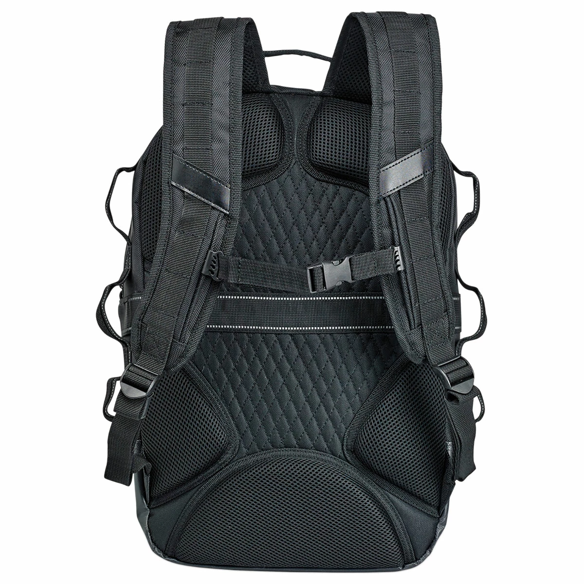• Center compression straps cinch to reduce bulk and shifting while riding