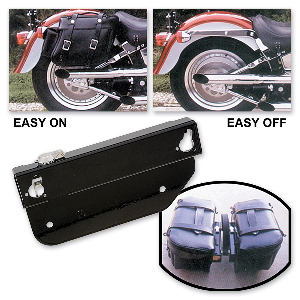 • Metal backing plates that attach to your rigid-back leather bags have keyhole slots