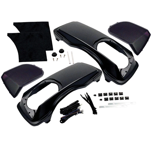 • Features high impact ABS replacement saddlebag lids, grilles, gaskets, striker plates, grommets, wire harness and custom rubber spacers to help fit most 6″ x 9″ car stereo speakers (speakers sold separately)