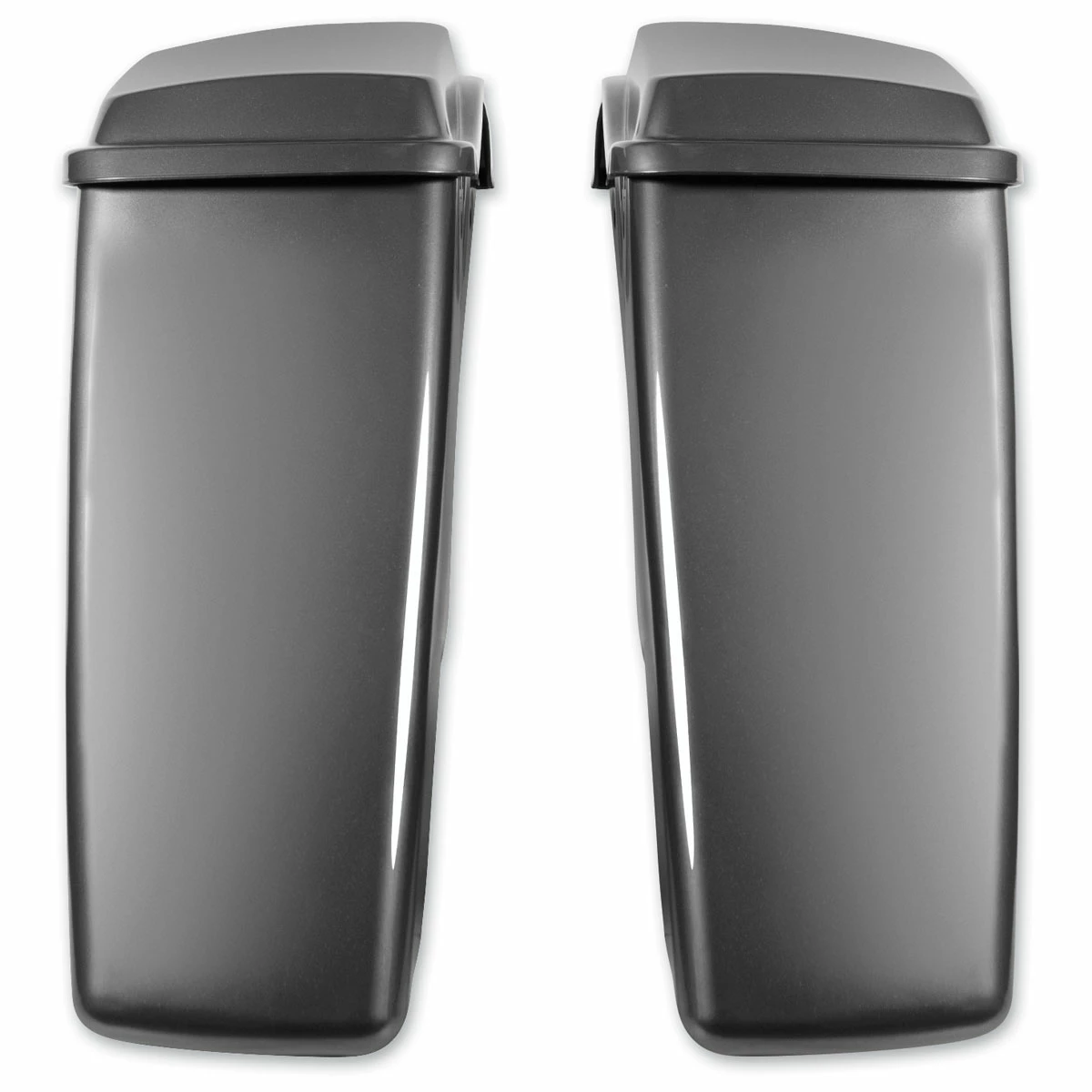 • These 2-into-1 Stretched Saddlebags are built to last and are painted OEM Color Matched Charcoal Pearl.