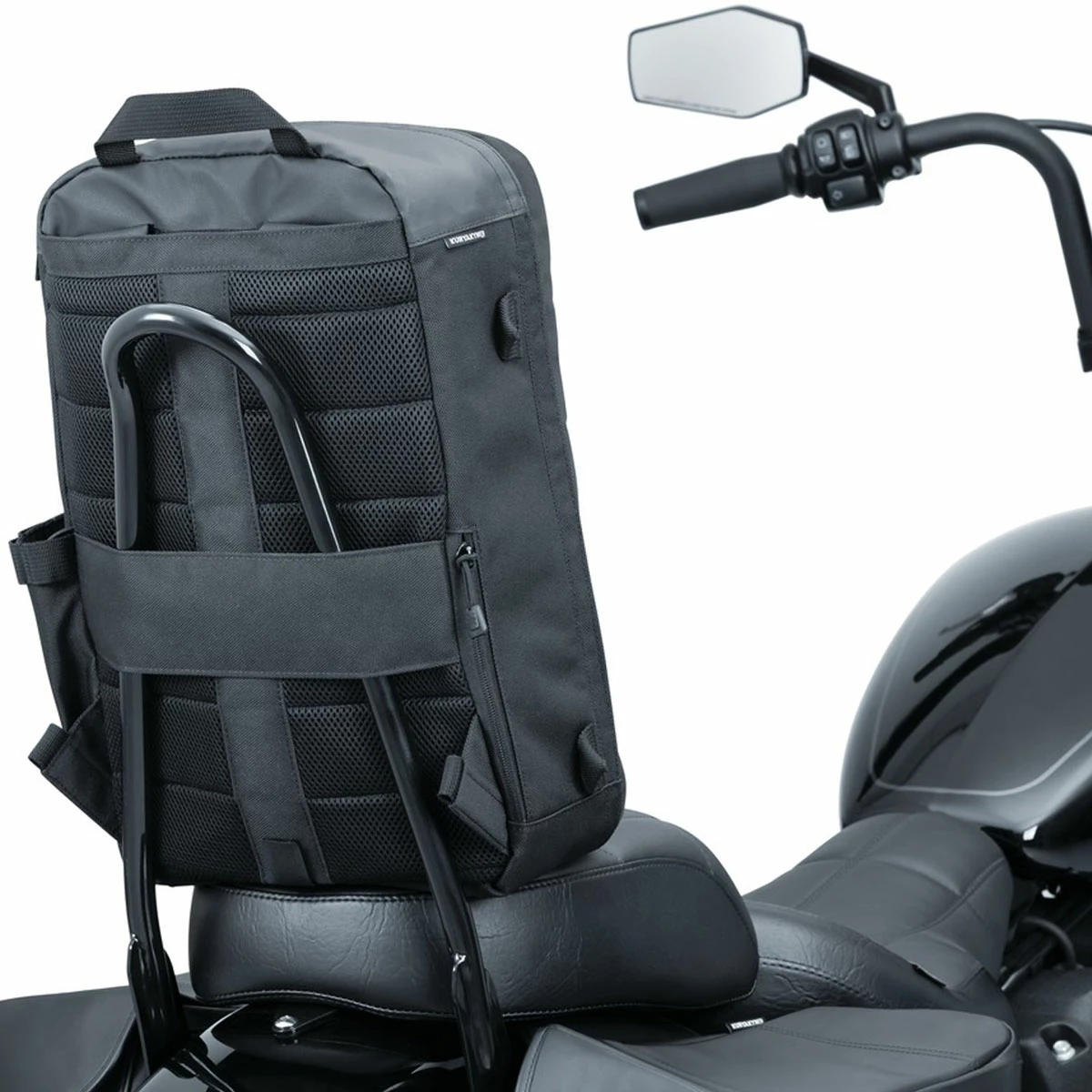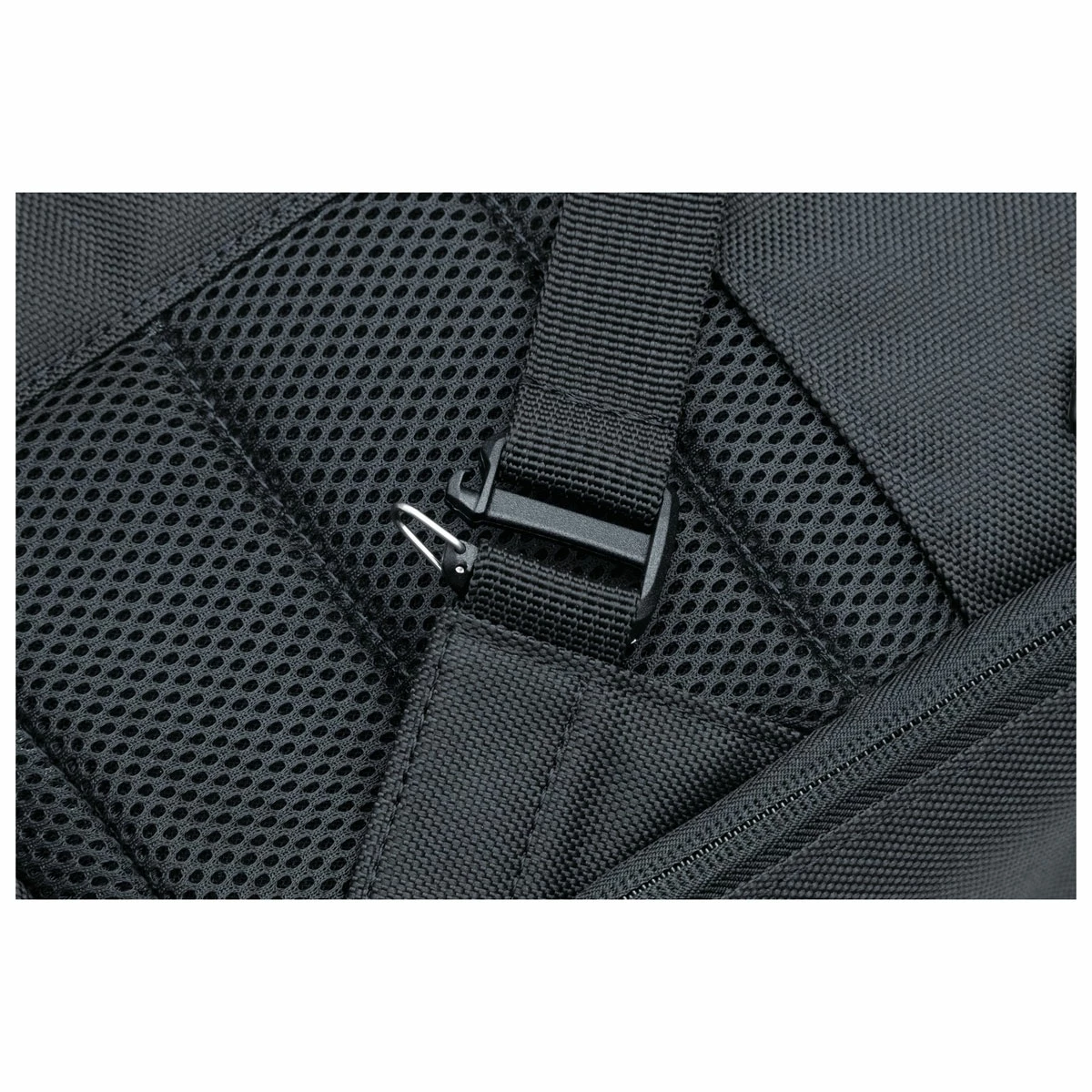 • Integrated sissy bar/trolly strap and sleeve for shoulder strap storage
