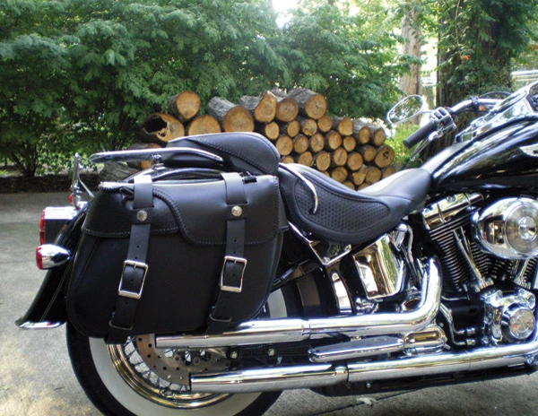 • This motorcycle accessory is made from a 10-12 oz. American tanned struck-through leather