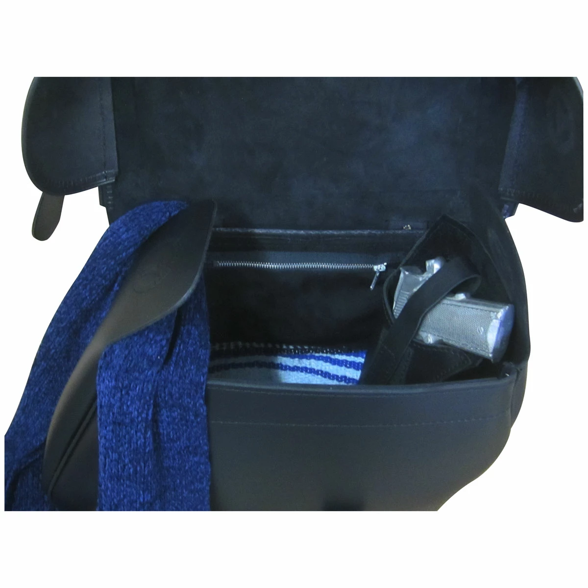 • Inside small zipper pocket holds smaller items such as maps, passports, etc.