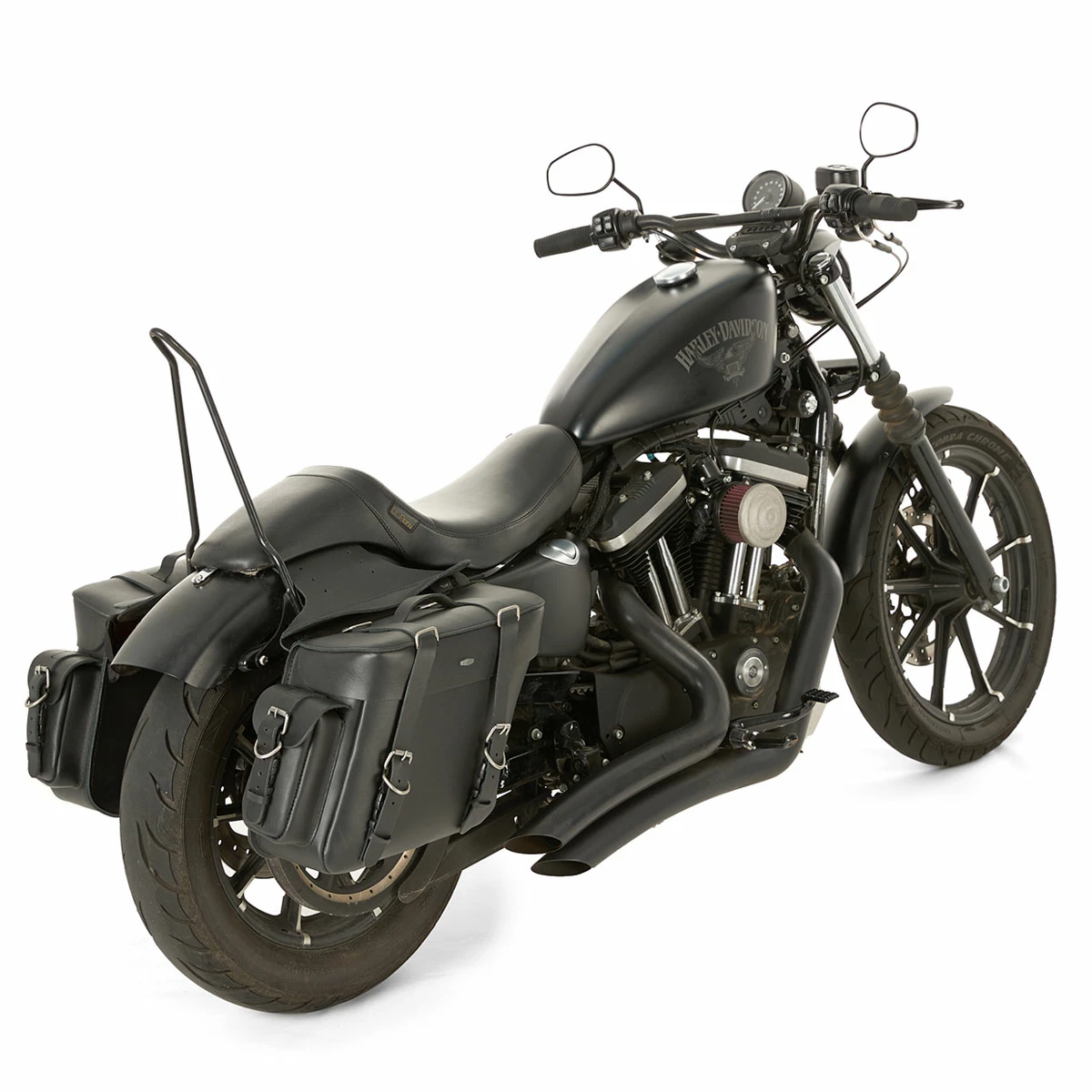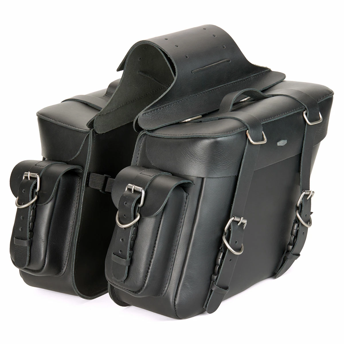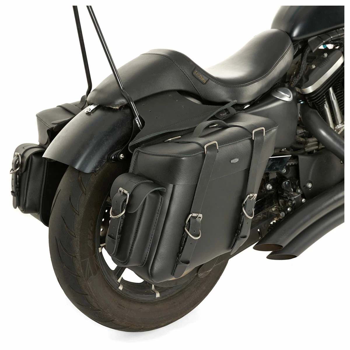 • Leather carry handles with reinforced box stitching for easy carrying off the bike Includes two bags and throw over system with YKK Vislon zipper off yokes