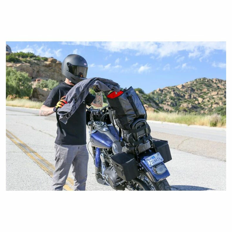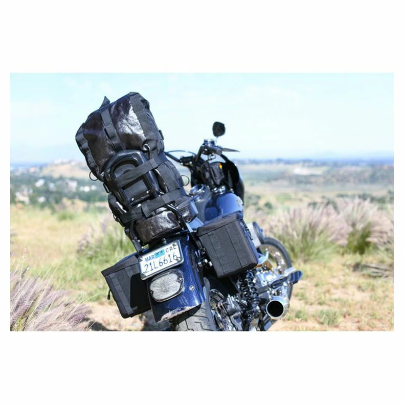 With multiple large openings, accessing your belongings has never been easier. The main top YKK zipper allows quick access while the bag is laying down. The top loading opening makes it nice to get to your favorite jacket or rain gear without having to ever detach it from your bike. With several strapping locations, two 1 1/2″ buckle straps, six D-Rings and MOLLE webbing on the bag, you can securely attach the bag where you want it. All in all, it’s made with the highest level materials and accessories including YKK zippers, 1680 ballistic nylon and sports a 100% waterproof welded seam cover. This bag is sure to be the bag for your next Mission.
