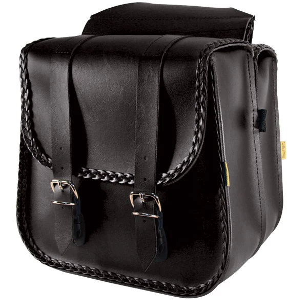 • 3-strand braiding trims the rich black synthetic leather and internal snap flaps add security