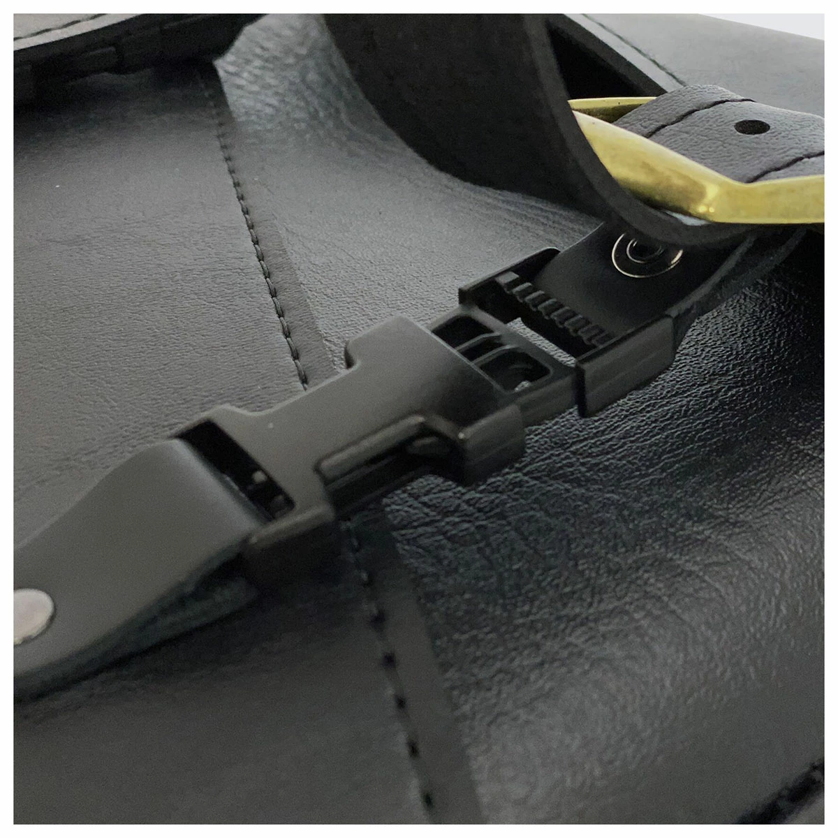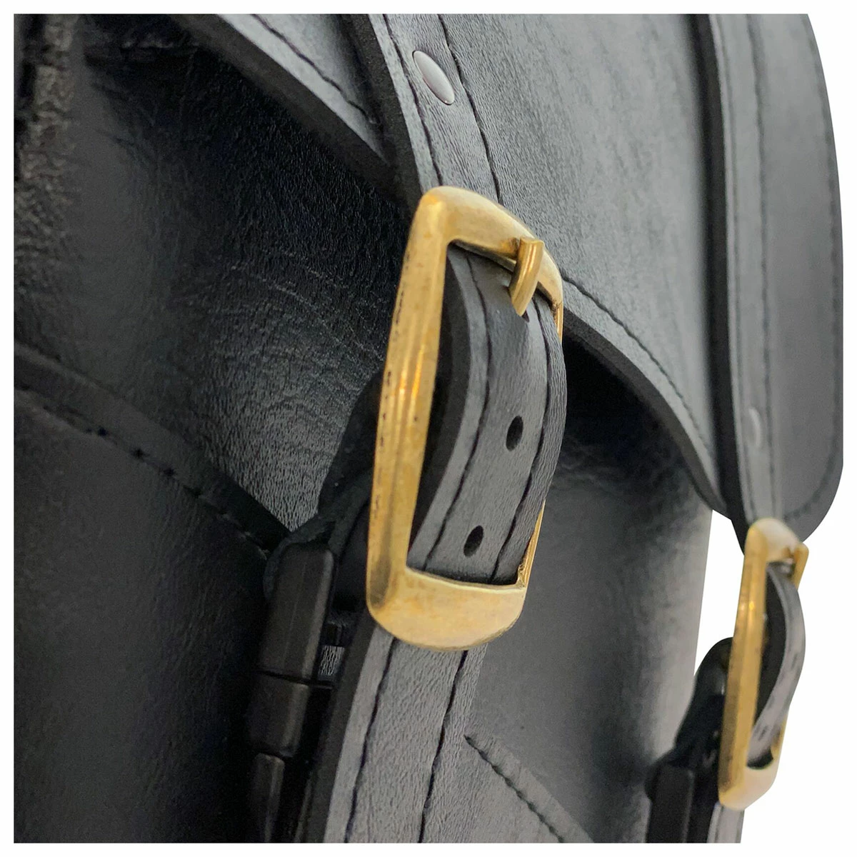 • Quick release buckles hold the outer flap down while the black buckles give a modern look to the bags